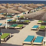 Отель обладает закрытым пляжем с шезлонгами и зонтиками.